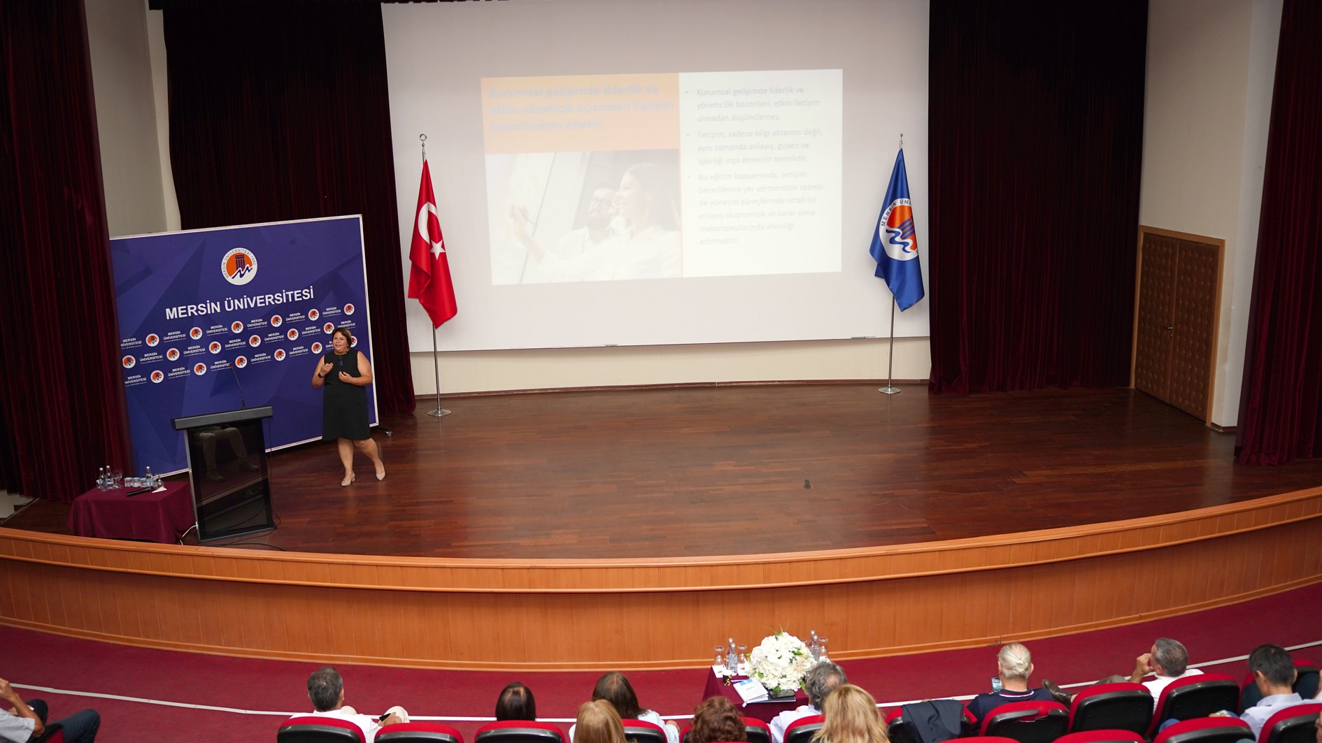Saygı Duruşu ve İstiklal Marşı ile başlayan programda açış konuşmasını yapan Rektör Yardımcımız Prof. Dr. Ahmet Hakan Öztürk, “Mersin Üniversitesi olarak bizler, güçlü bir akademik yapının yanında; etkin, katılımcı ve şeffaf yönetim anlayışını da kurumsal gelişimimizin en temel dayanaklarından biri olarak görmekteyiz. Çünkü biliyoruz ki, üniversitelerin geleceğe yön verebilmesi, yalnızca nitelikli eğitim ve araştırma faaliyetleriyle değil; aynı zamanda güçlü bir yönetim kültürüyle mümkündür. İşte bu farkındalıkla hazırlanan programımızın temel amacı; yöneticilerimizin iletişim, motivasyon, zaman yönetimi, değişim yönetimi gibi kritik alanlarda yetkinliklerini artırmak, karar alma mekanizmalarında ortak bir anlayış geliştirmek ve yönetim süreçlerinde verimliliği yükseltmektir. Bu kazanımlar, Üniversitemizin “Araştırma Üniversitesi” olma hedefine ulaşmasında da büyük bir katkı sağlayacaktır. Zira araştırma üniversitesi olma süreci; yalnızca bilimsel üretkenlikle değil, aynı zamanda etkin yönetim süreçleri, güçlü bir kurum kültürü ve sürdürülebilir kalite yaklaşımıyla desteklendiğinde başarıya ulaşabilir. Bu kapsamda gerçekleştirilen program, Üniversitemizin vizyonunu güçlendirecek; ortak akıl ve iş birliği temelinde yönetim kültürümüzü daha ileriye taşıyacaktır.” dedi.