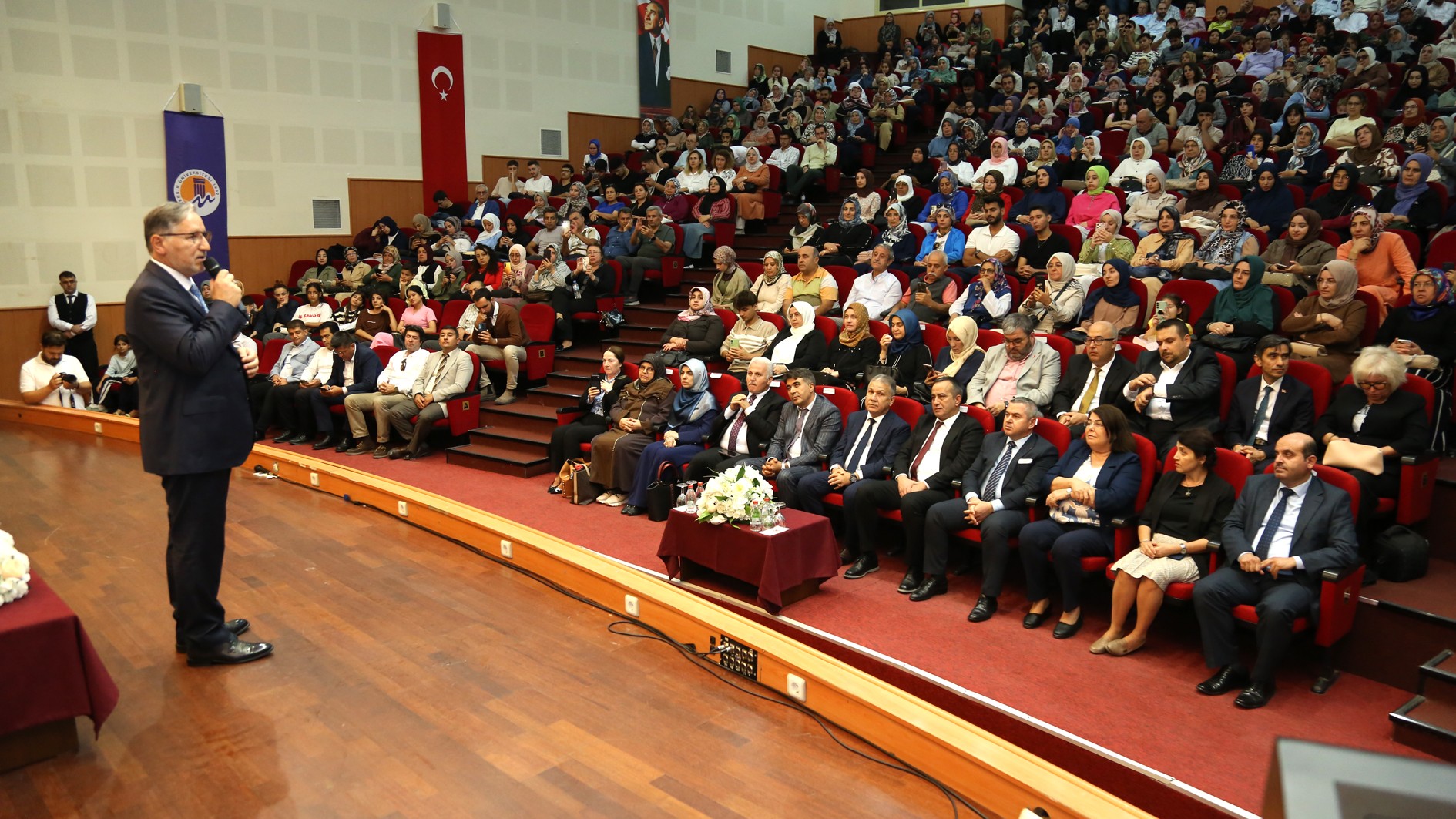 Açış konuşmalarının ardından, Prof. Dr. Mustafa Karataş “Mutlu Bir Yuva: İslam’da Aile” konulu konferansını verdi. Allah’ın insanlara sevgiyi çeşit çeşit verdiğini anlatan Prof. Dr. Karataş, kâinatın sevgi üzerine kurulduğunu söyledi. Peygamberimiz Hz. Muhammed’in, büyük İslam âlimlerinin, akademisyenlerin hayat hikâyelerinden ve Hadis-i Şeriflerden örnekler vererek aile kurumunun önemi ile ailede dikkat edilmesi gereken hususlar hakkında konuşan Prof. Dr. Karataş, ailede mutluluğun sırrının 8 maddeden meydana geldiğini bunların, “Saraya layık kedi sokakta kalmaz; Ağılda oğlak kuzulasa Mevla ot bitirir; Az olan helal, çok olan haramdan hayırlıdır; Sürpriz hediyelerle gönül almasını bil; Evde neşemiz ve sohbetimiz çok olsun; Evde zikrimiz, şükrümüz çok olsun; Evde saygı ve sevgi olsun ve Evde yalan olmasın” şeklinde olduğunu belirtti.