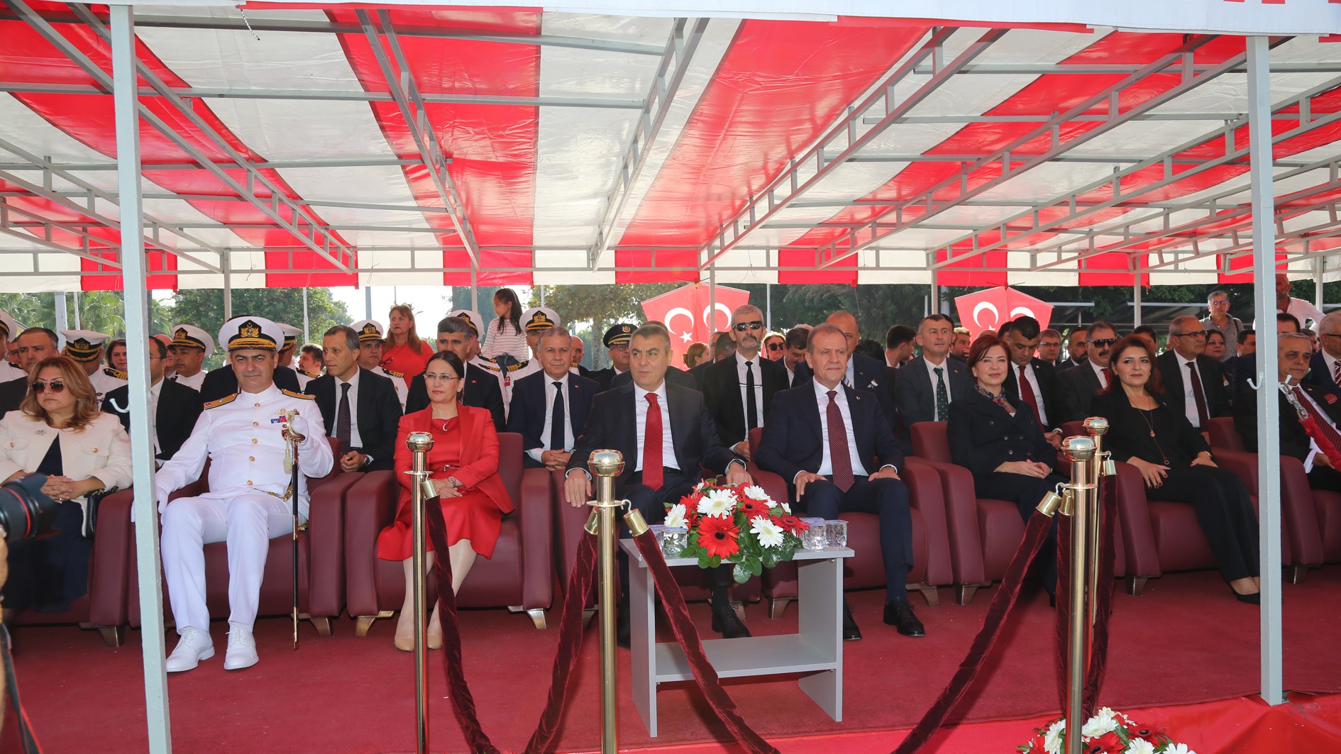 Tören sırasında, Adana’da bulunan İncirlik Hava Üssü’nden kalkış yapan Hava Kuvvetleri Komutanlığına ait üç F-16 uçağı, alçak uçuş gerçekleştirerek kutlamalara renk kattı.