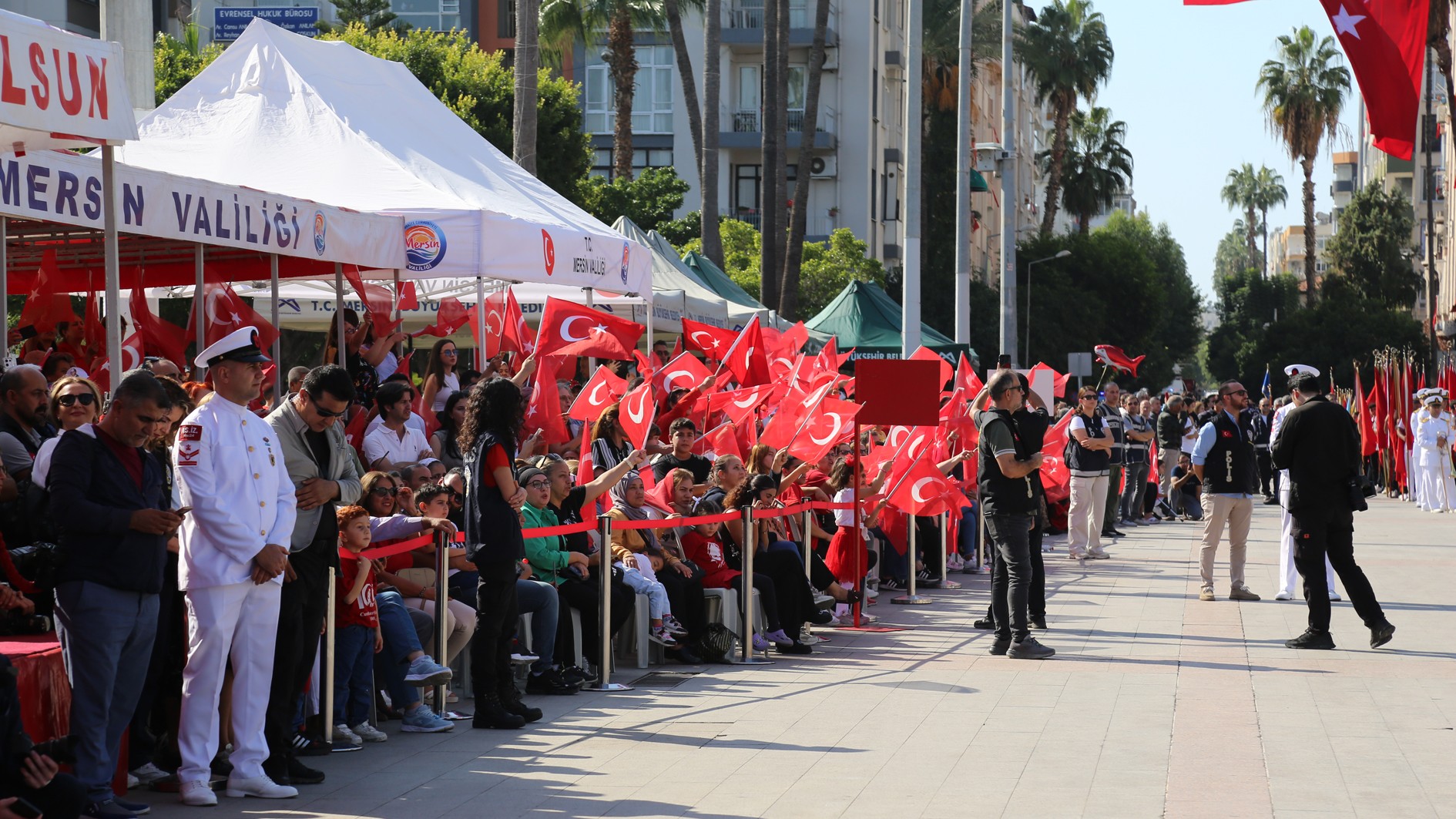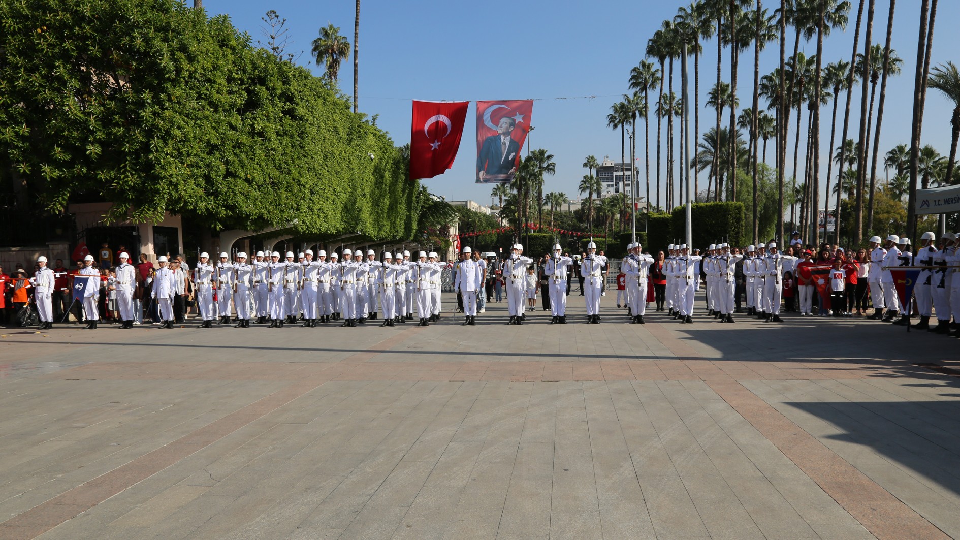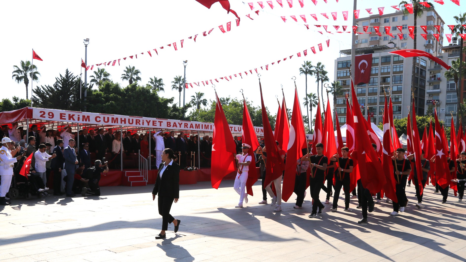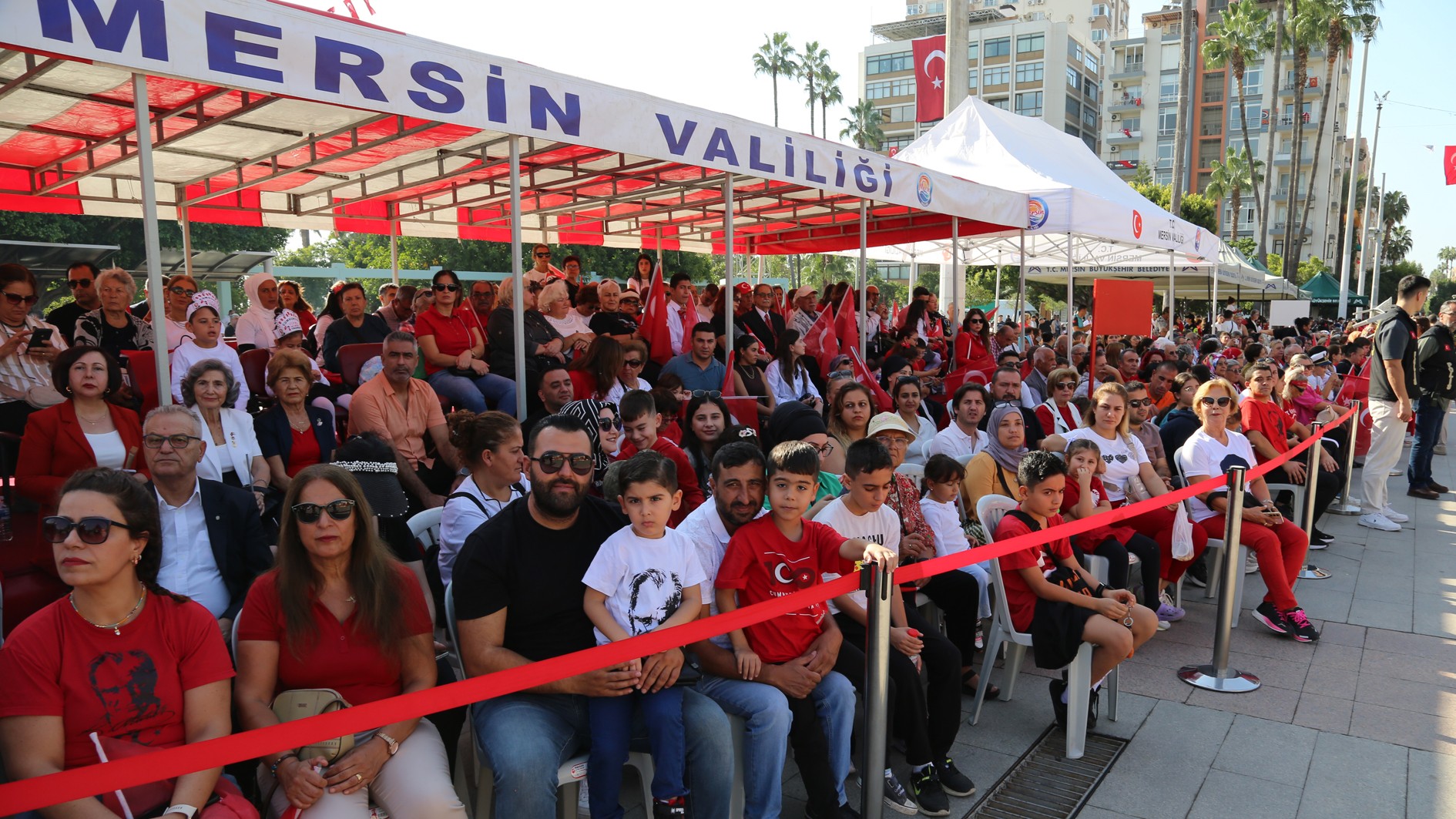29 Ekim Çarşamba günü Mersin Cumhuriyet Alanı’nda gerçekleştirilen kutlama programına; Mersin Valisi Atilla Toros, Akdeniz Bölge ve Garnizon Komutanı Tuğamiral Soner Kazankaya, Mersin Büyükşehir Belediye Başkanı Vahap Seçer, Mersin Milletvekilleri, il protokolü, Rektörümüz Prof. Dr. Erol Yaşar ve çok sayıda vatandaş katıldı.