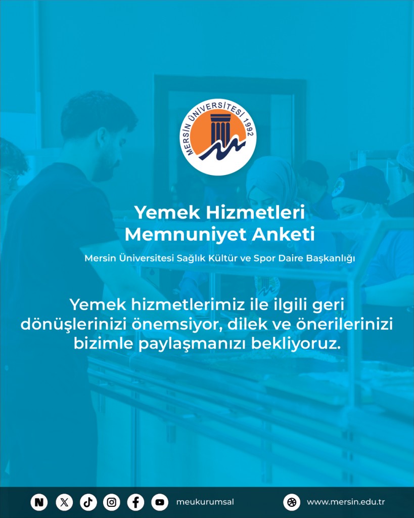 Yemek Hizmetleri Memnuniyet Anketi'ne katılmak için lütfen tıklayınız!