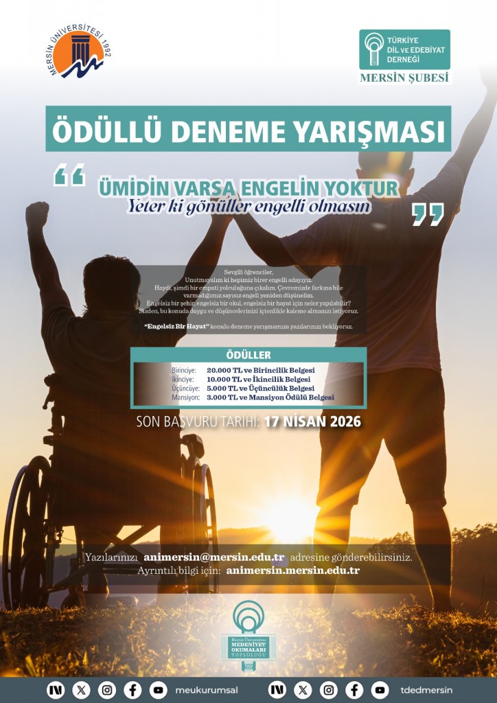 Ödüllü Deneme Yarışması "Ümidin Varsa Engelin Yoktur. Yeter ki Gönüller Engelli Olmasın"